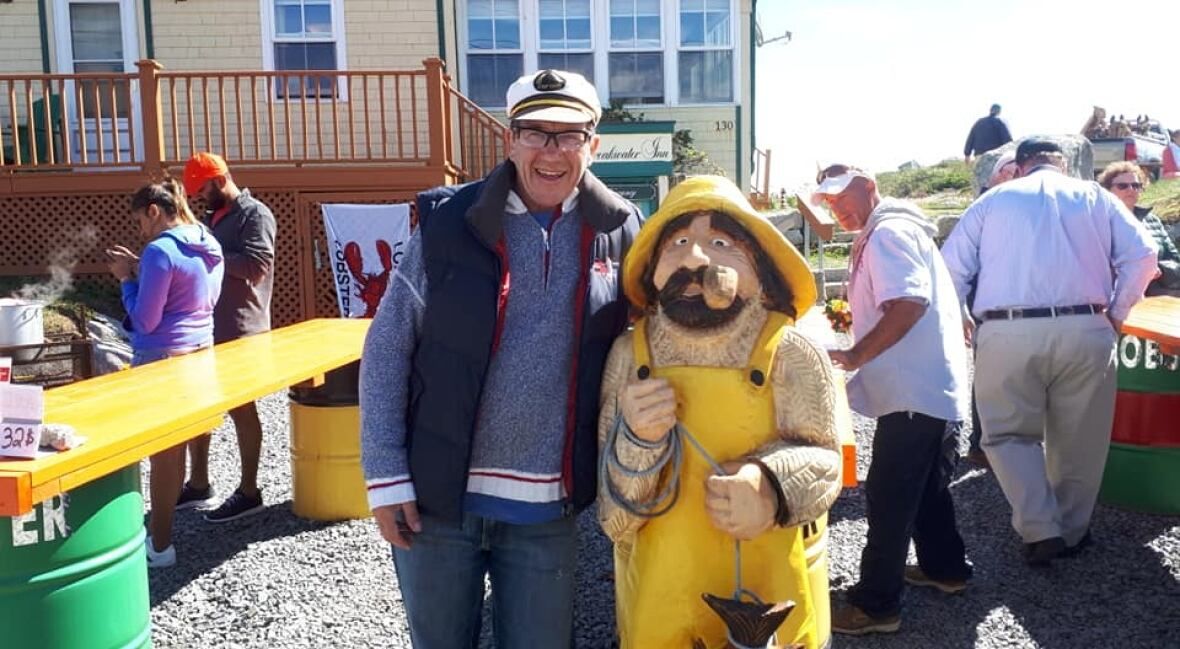 Peter Richardson with his fisherman statue, Shorty. (Submitted by Peter Richardson)